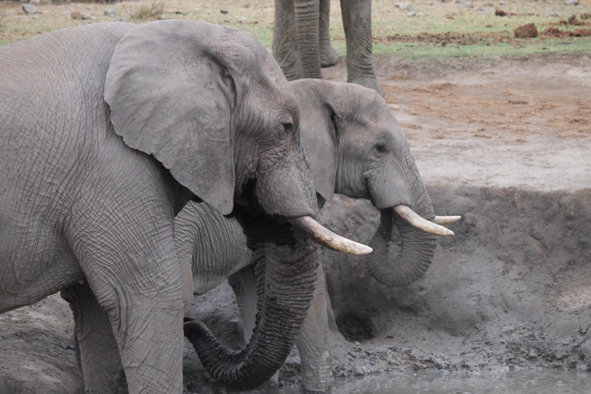 We then went to a watering hole where seven elephants were drinking. They were young males, and they had churned the shallow water into mud, so one of them carved out a hole in the bottom of the bank until he reached fresh water. They were taking turns slurping it up their trunks like they were using a straw. What a comical sound!
