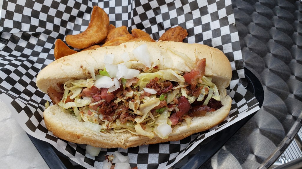 A brewery in Custer had our name on it for lunch, with a dog-friendly back porch and an interesting menu. Simon opted for the bratwurst made with rattlesnake, rabbit, and pork, and Susan chose the wedge salad. No one cares what a wedge salad tastes like, so I’ll get straight to the interesting part: the rattlesnake and bunny brat tasted “like chicken,” Simon joked, but admitted it really just tasted like a meaty sausage, with no odd flavors. “I’d have it again,” he insists.
