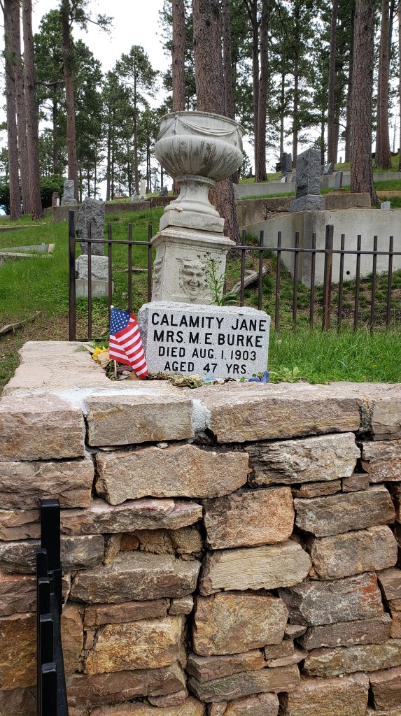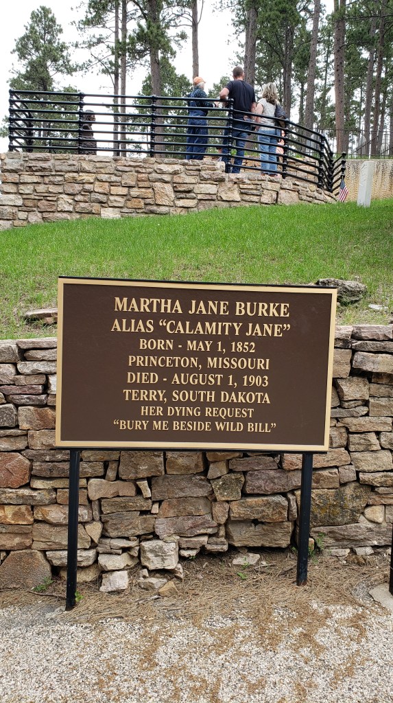 Now, it’s probably not normal, but Susan loves cemeteries. Each headstone tells a story in miniature, like the gargoyles on European churches, and they set off a spark in her brain that is both enjoyable and convoluted. The story of the two people whose gravesites we came to see needs no imagination. Wild Bill Hickock and Mrs. M. E. Burke, also known as Martha Jane Canary but best known as Calamity Jane, have gone down in U.S. history as well-known and beloved figures.