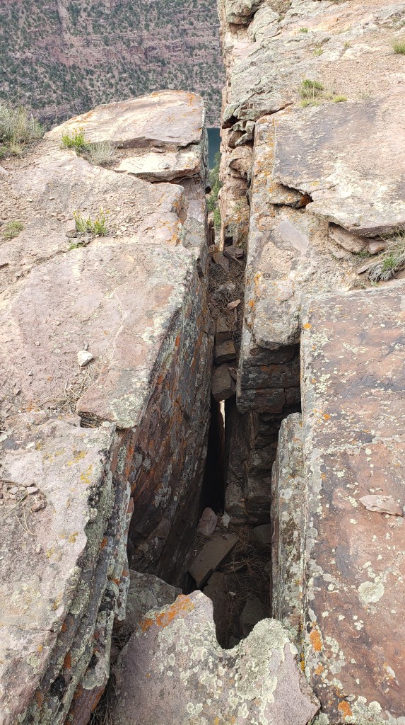 There are warnings to avoid the deep fissures all around the walkway that leads out to the overlooks.
