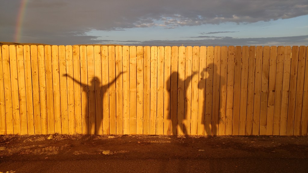 Our final evening in Wyoming was celebrated with a glorious, full rainbow, and some fun with a fellow camper when we noticed our shadows on the fence. Isn’t life great sometimes?