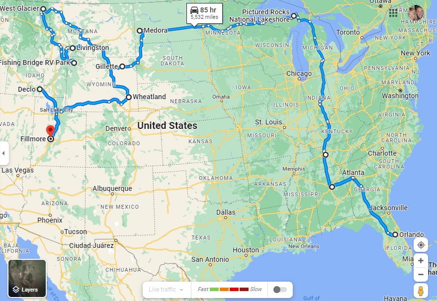 The total distance in Indefatigable (or Fati for short) since we left Orlando is now 5,929 miles.