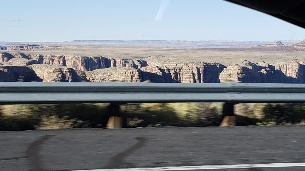 As we continued north after leaving the park, we came across one of the furthest reaches of the canyon, near where the Colorado River and the Little Colorado River meet. A huge fissure runs along the highway, and we stopped to have a look at a big parking area set up just for that purpose.