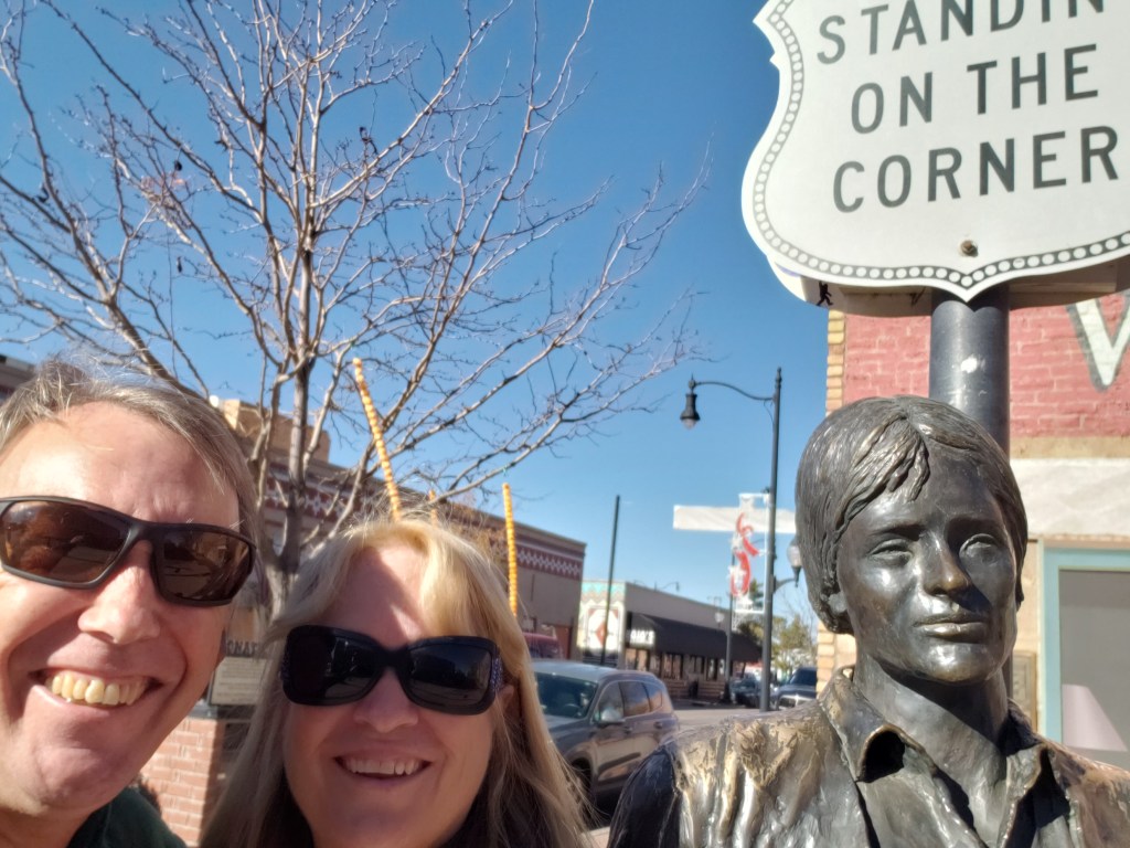 The next morning we took all the necessary photos “standing on the corner in Winslow, Arizona,” including with the flat-bed truck, before heading west to the crater.