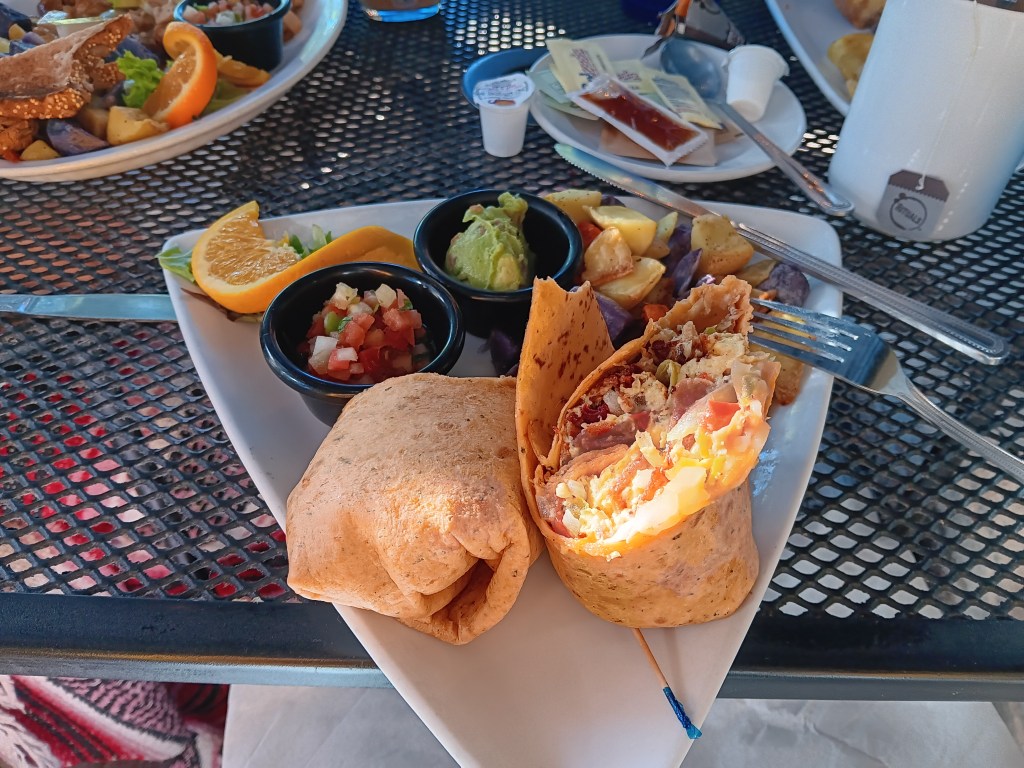 The next morning we ambled over to The Secret Garden Cafe, where Simon chose the Breakfast Burrito and Susan had the quiche. Simple elegance blended with delicious flavors, and we felt truly spoiled.