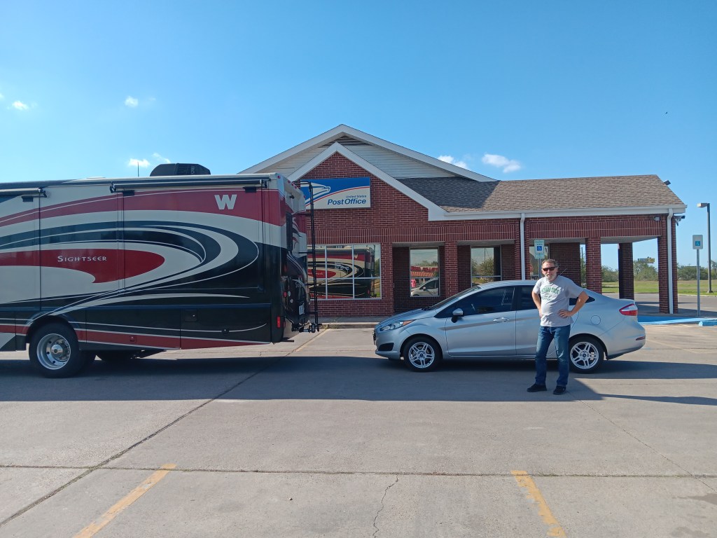 We had to make sure we didn’t arrive too early at our Donna campground, so we paid a call to the local Post Office (which had a nice empty parking lot!)