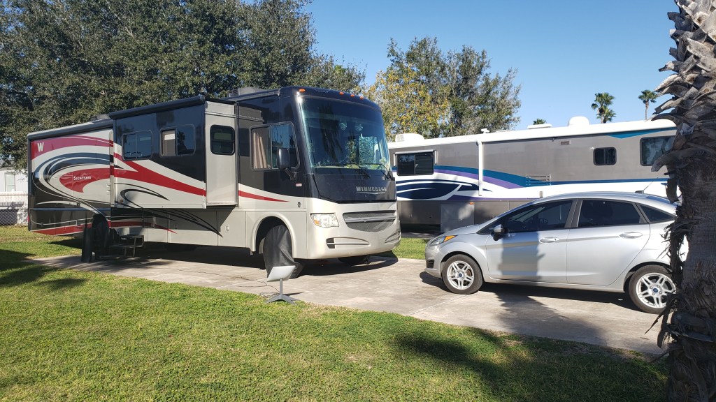 All safely set up at our RV resort in Donna, Texas. We could end up being here a whole month!