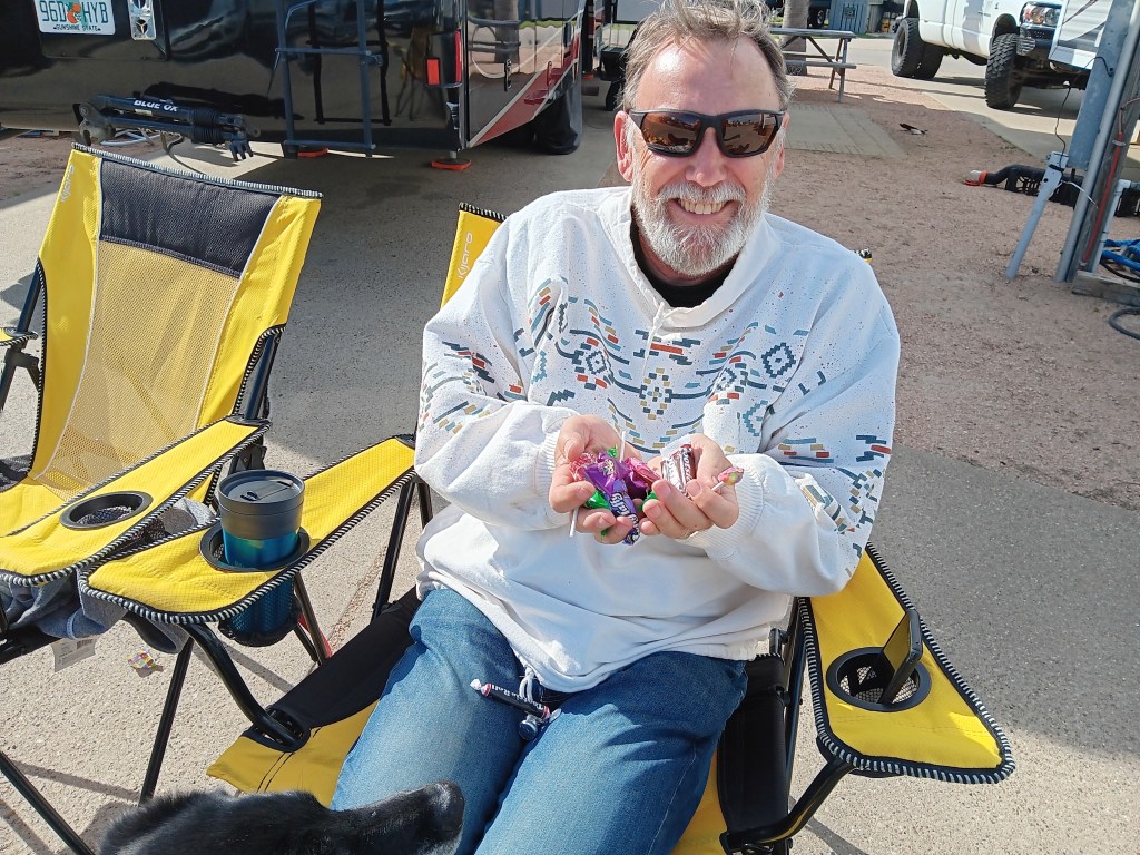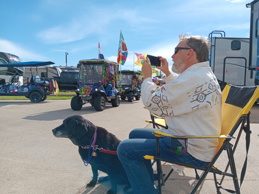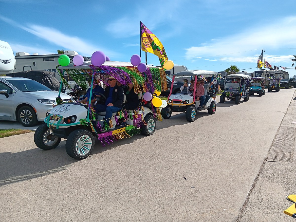 We arrived on Fat Tuesday and were delighted to hear there would be a Padre Gras golf cart parade that afternoon, the island’s answer to Mardi Gras. Campers were lining their chairs up along the campground’s main streets, and we joined them.
