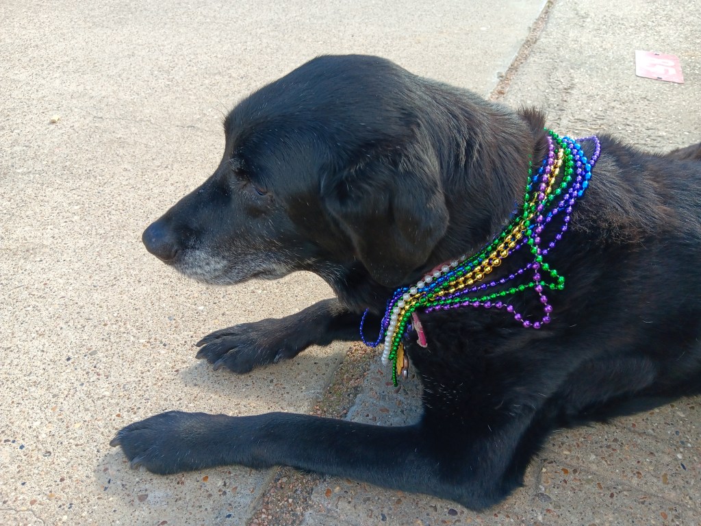 We were all set for the fun of clapping and cheering as each cart went by, but hadn’t thought about the paraders throwing beads and candy. Ruthie got to wear the beads for a while, then we gave them to our neighbor’s granddaughter. We doled out the six or eight pieces of candy over the following few evenings and called them “dessert.”