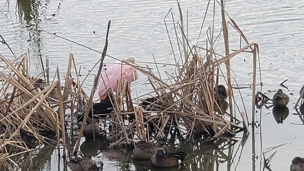 A fair bit of our five-day stay was spent wandering around wetlands and reserves with our binoculars. Many of the birds that live here or migrate here for winter are familiar to us; ibis, certain kinds of ducks, herons, egrets, and some cranes, but we were excited to see some new ones, including Roseate Spoonbills and the endangered Whooping Crane.