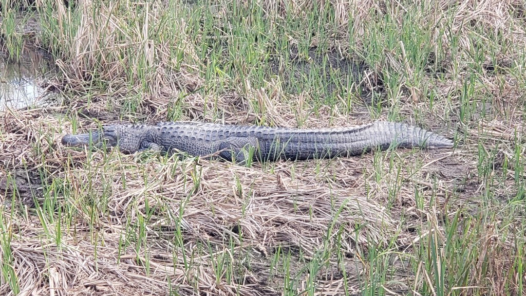 Gators are always a bit special, but we’re pretty used to seeing them. In this instance, the Leonabelle Turnbull Birding Center’s resident gator, called Boots by the locals, is a great huge whompin’ example of the species, measuring in at 14 feet. He’s a grumpy 50-year-old who chased away his only potential buddy, Stumpy, who was missing a leg. Stumpy got relocated, then relocated again, and is now living in Beaumont, our destination a few weeks from now.