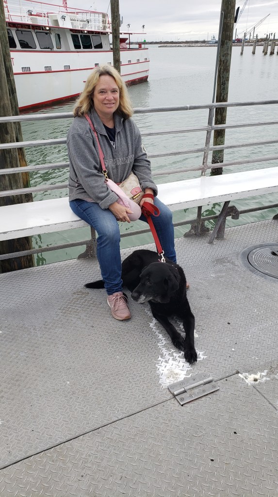 Ruthie was not impressed. At ALL. The vibration of the ferry totally unnerved her, and we could hear her thanking all the blessed angels in heaven when her feet were back on terra firma. That dog can pull – hard! – when she wants to go back to the car.