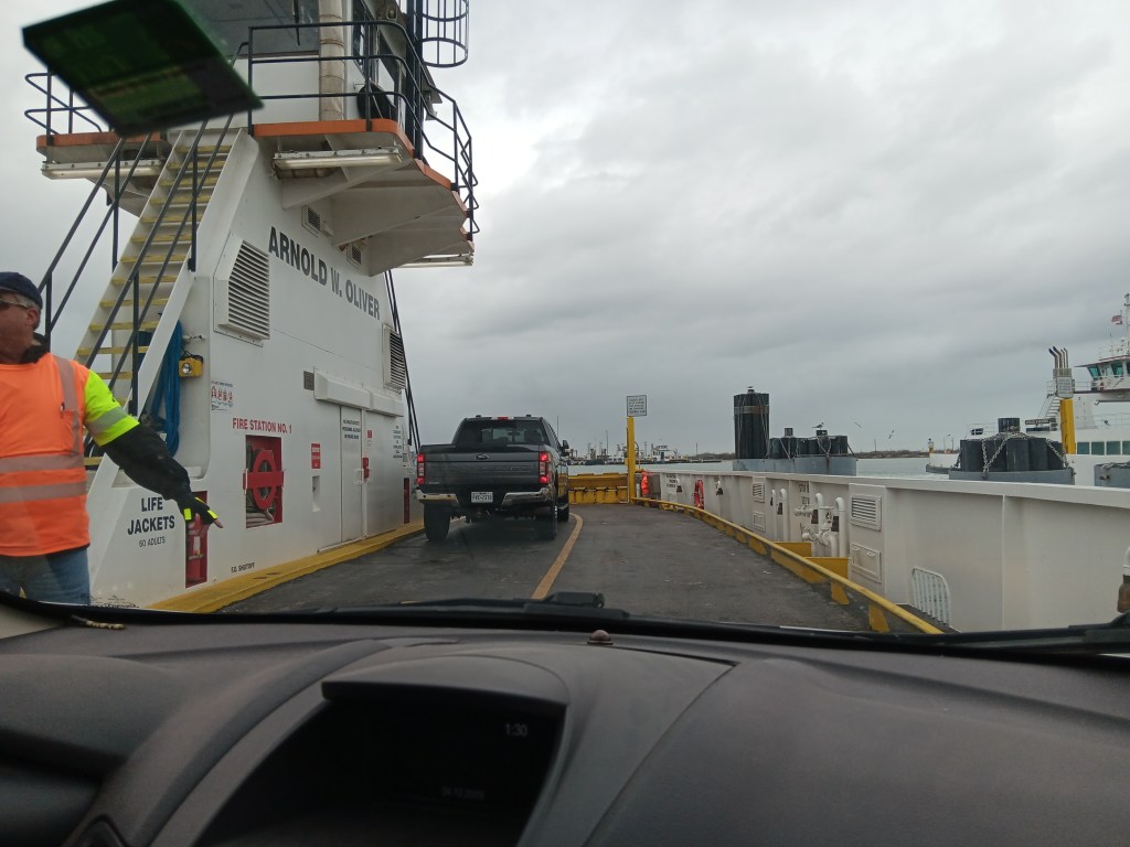 The island is all chopped up in this area, and while there are bridges, it sometimes requires less milage to take the free car ferry from Port Aransas to Aransas Pass, and that would be our route when it was time to move on to Port Lavaca. But first, we wanted to give it a try in Nippy to be sure we knew how to do it in Fati.
