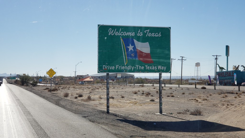 With its hidden state-border crossing sign and slightly aggressive motto, Texas loomed large in our front windshield as we left New Mexico behind for what will be nearly two months in the Lone Star State, waiting out winter.