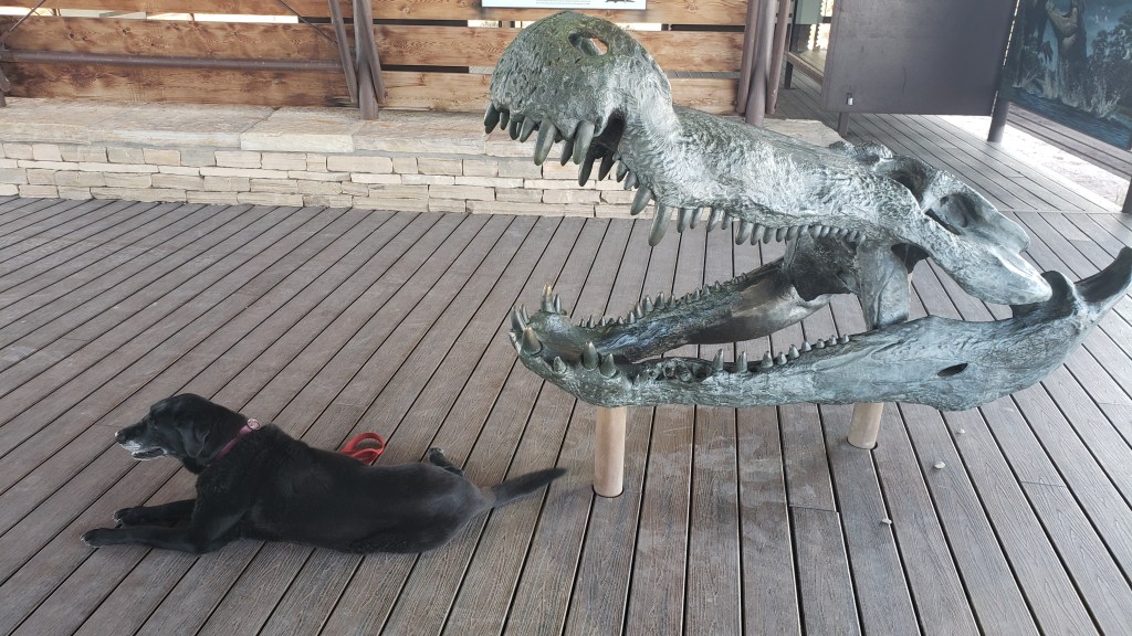 Coming from Florida, we were impressed by the park’s other reptilian claim to fame, clocking in at nearly 50-feet. Deinosuchus riograndens is a dinosaur-munching alligator big enough to take down giant herbivores that waded too close to its massive maw.