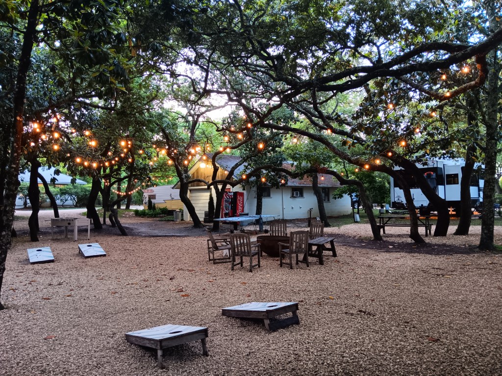 When is a campground only 29 miles away from your previous location but a million miles away from harsh reality? When it’s The Hideaway Retreat in Navarre, Florida, an oasis of magnolia trees, white sand beach, and the blue, blue, blue of the ocean.