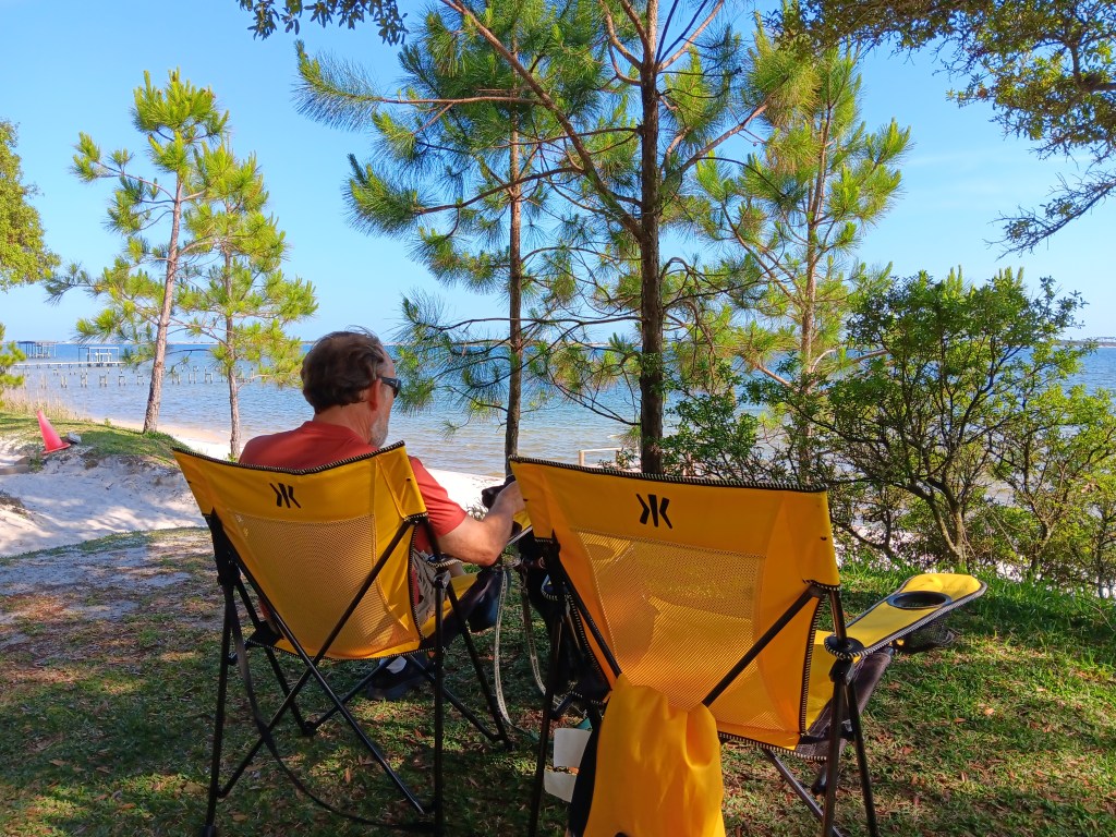 It drove us to distraction until we asked one of the staff and they told us it was testing that takes place at the Hurlburt Air Force Base Special Operations Command’s training grounds, just across the Sound. They’re blowing things up, but don’t worry; after a while you won’t hear it anymore. Which was (partly) true. It was simply one of those background noises that makes RVers (okay, us) wonder if something on their rig is eager to meet a mobile mechanic and will cost many, many hard-earned dollars.