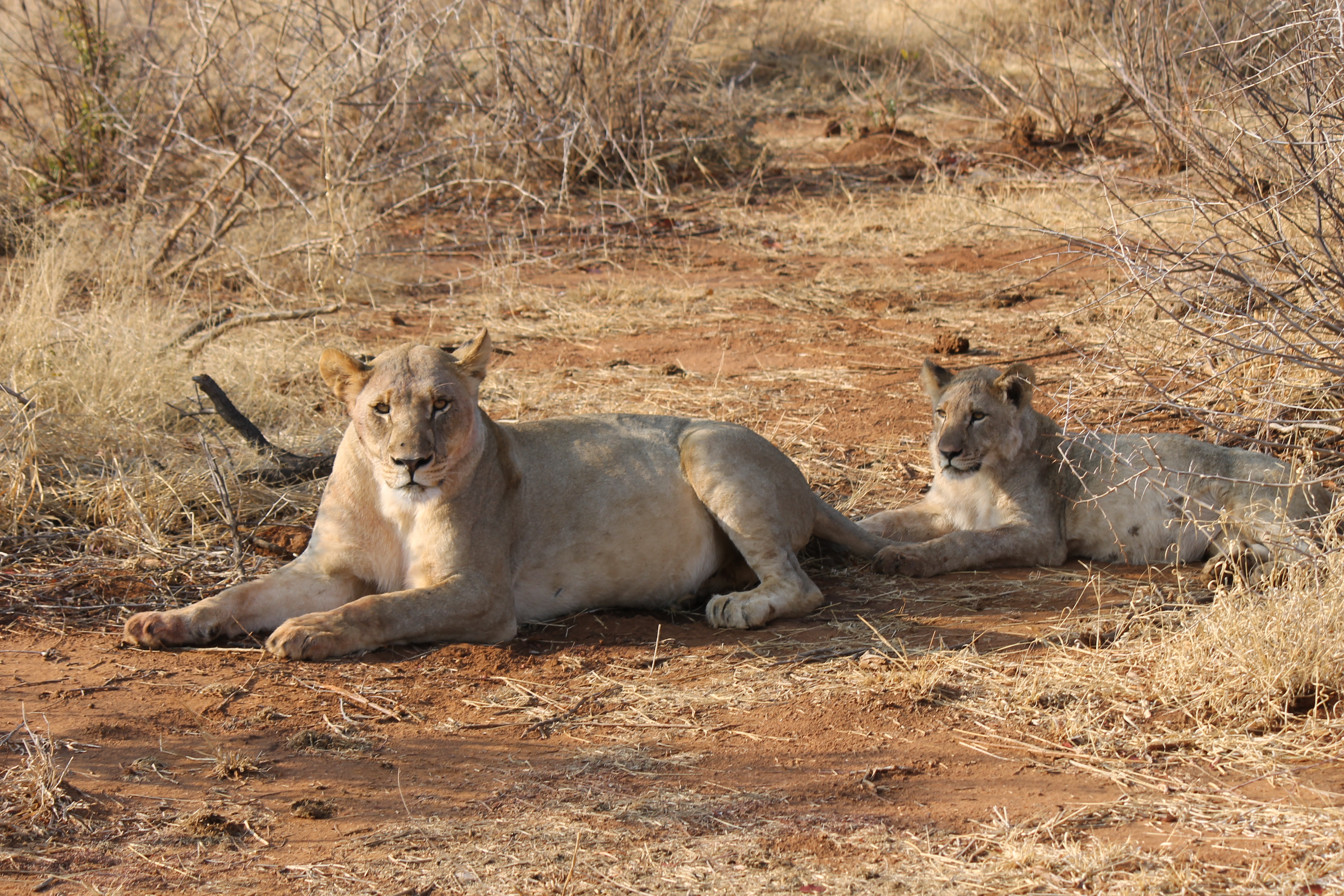 But the lion had been in the park with his mother since he was a cub, so he was fine with us nearby. As he lay there he gave two gigantic yawns and we had a marvelous view of his extremely impressive teeth!