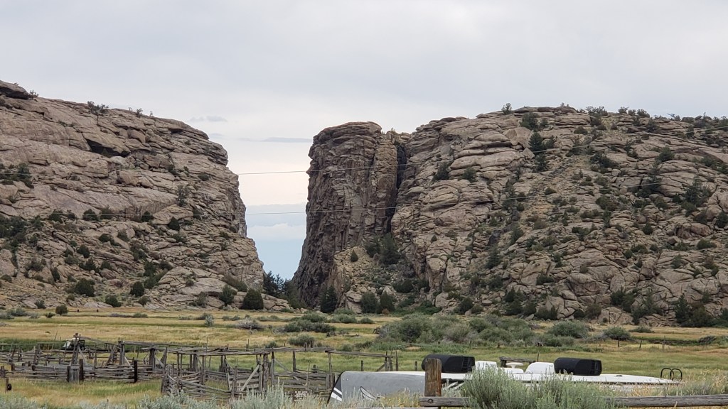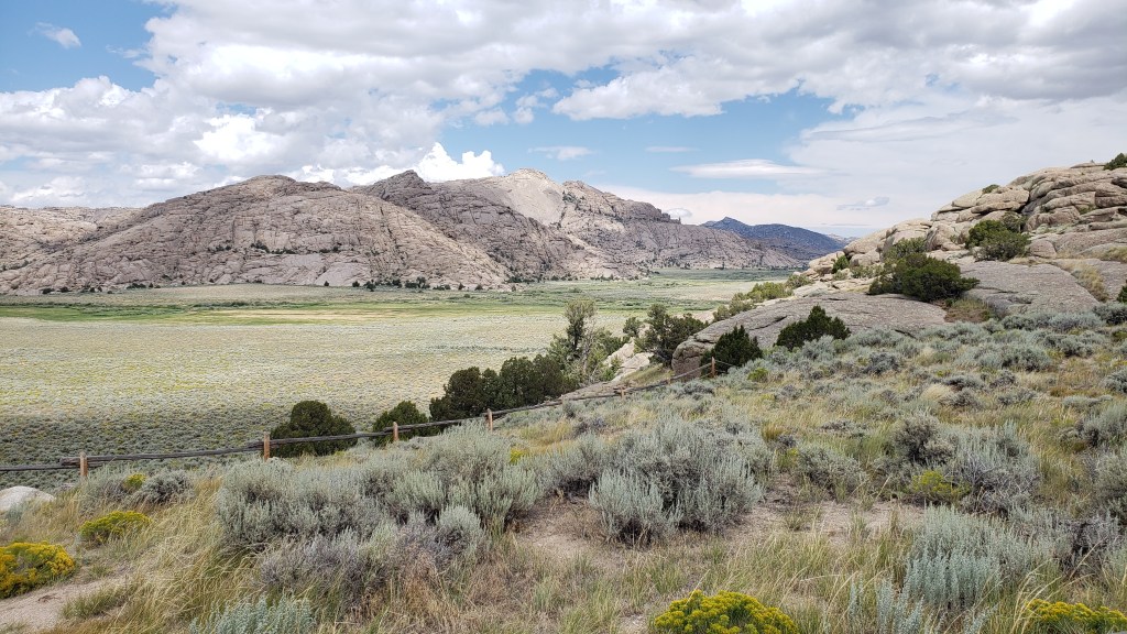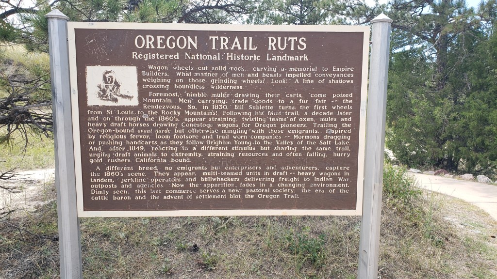 When we moved Fati to a new campground in Wheatland, Wyoming, north of Cheyenne, we made a day trip out to the Guernsey Ruts, Register Cliff, and Fort Laramie, also milestone locations on the trails.