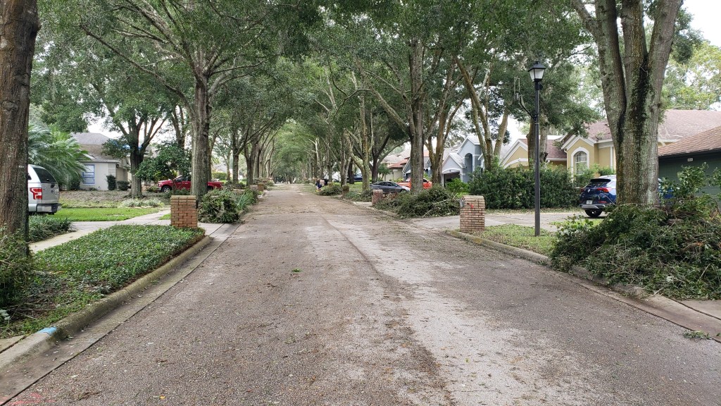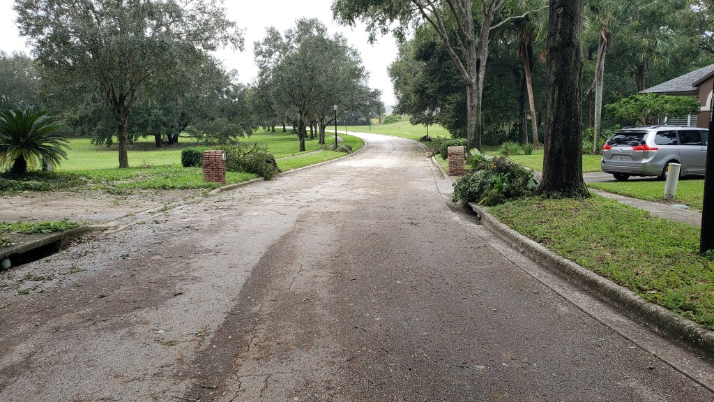 The full sub-division had been hit with more trees downed in a handful of places, and general tree debris pretty much lined every road, but there was nothing catastrophic to report, and traffic was able to navigate fairly easily, albeit slightly slower than usual.