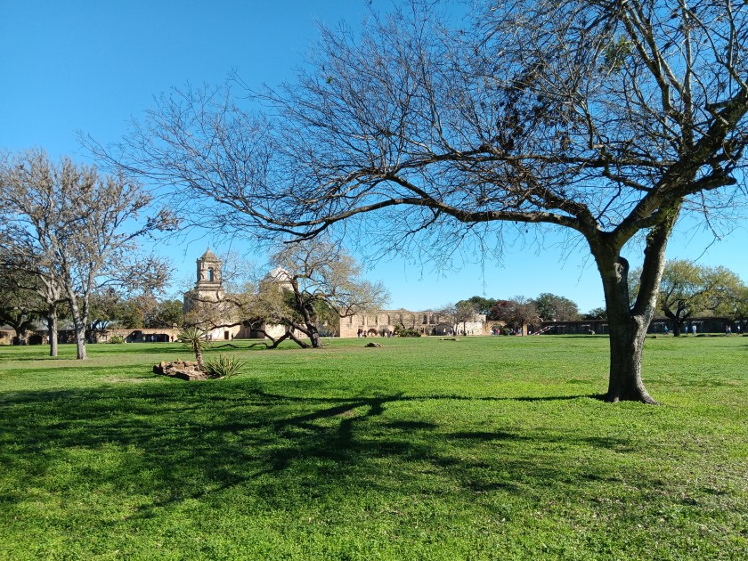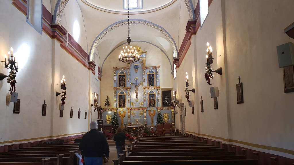 Mission San José was known as “The Queen of Missions” for its larger-than-average size, and indeed, the church does cut an imposing figure over the huge courtyard outside. Simon and I both thought a mission was a just church; instead, it’s typically a community with living quarters, trades, agricultural work, and a church. But the mistake is an easy one to make, since the goal of forming the “community” was to convert native peoples to Catholicism, which would then generate new taxes for the King of Spain.