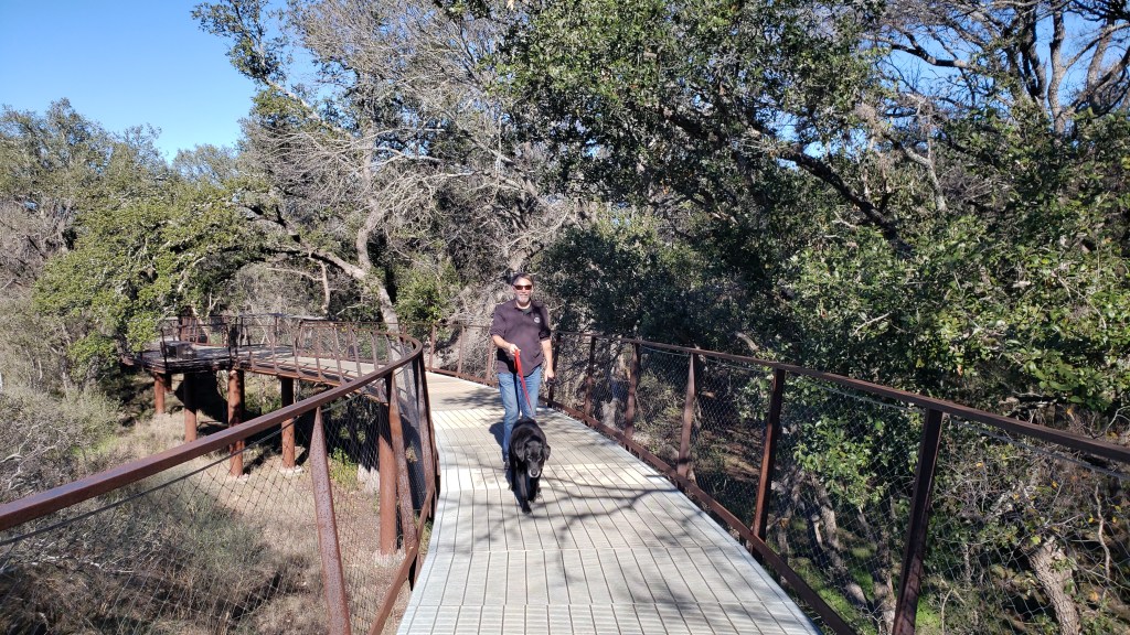 Stuffed to the gills, a long, slow walk around the nature retreat of Phil Hardberger Park Conservancy was in order, where, we were told, we’d find the Land Bridge and Skywalk. The park’s trails reminded us of Kensington Metropark, a favorite place for getting away from it all when we lived in Michigan.